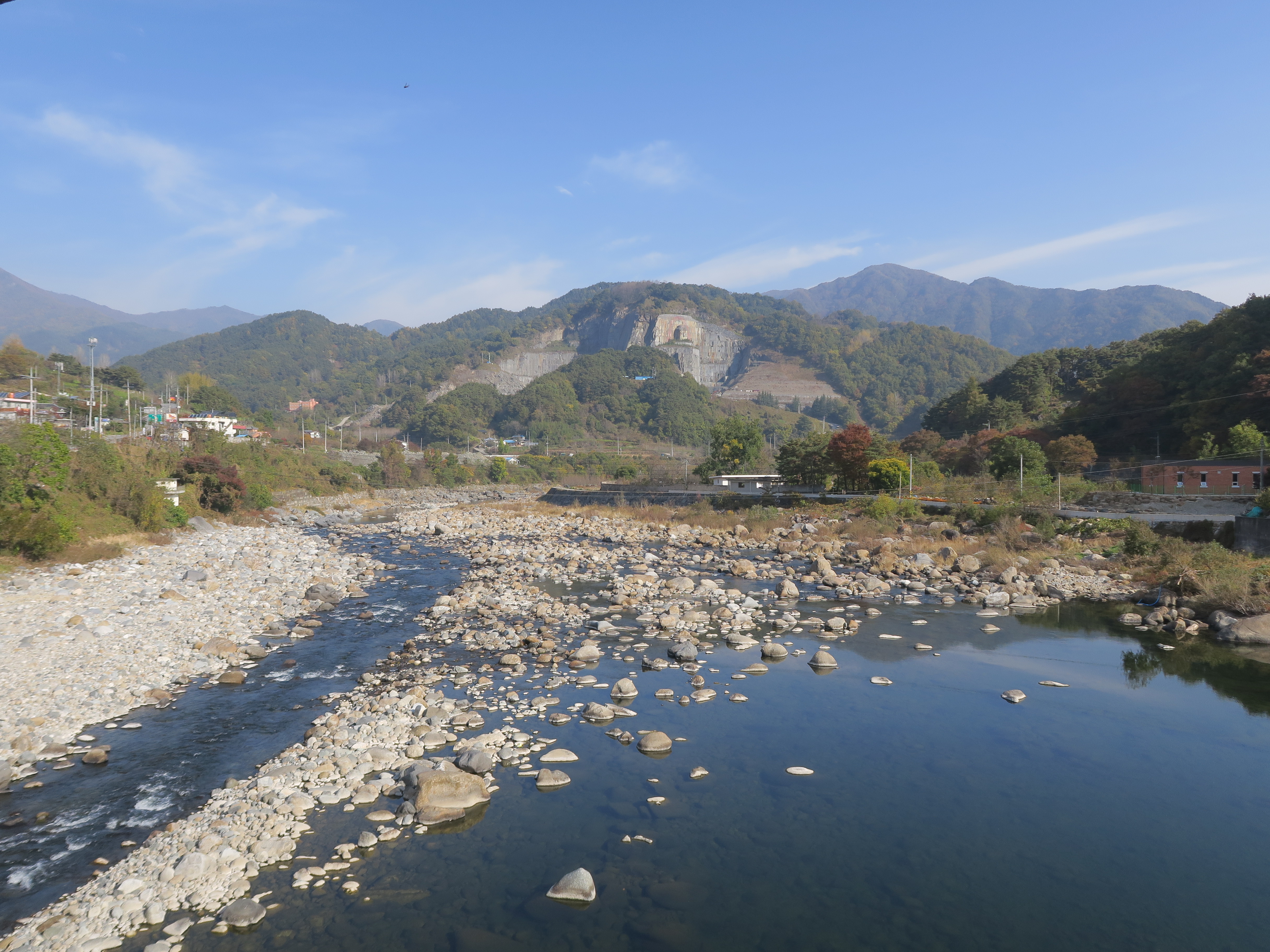 가만히 보고만 있으면 넋을 놓게 되는 풍경들이 있다. 하나는 장작불이 타는 모습이고 하나는 개울이 여울진 곳을 소리내며 흘러가는 모습이다. 엄천강에도 여러 여울목들이 있다. 큰 기암괴석들이 여기저기에 자리하고 있는가 하면 자잘한 돌들 틈으로 물이 흘러들었다가 빠져나가는 곳도 있다. 용우담을 기점으로 엄천이라 불리는 이곳은 운봉고원에서 흘렀던 임천과는 그 폭과 넓이가 사뭇 다르다. 평원을 가로지르며 흘렀던 임천은 들판을 촉촉히 적셔주기 위해 오랫동안 인간의 손길로 다듬어진 강이다. 그것에 비해 엄천은 지리산 깊은 계곡으로부터 수만년에 걸쳐 내려온 물들이 거칠게 형성해 온 모습 그대로 자신을 드러내고 있었다.