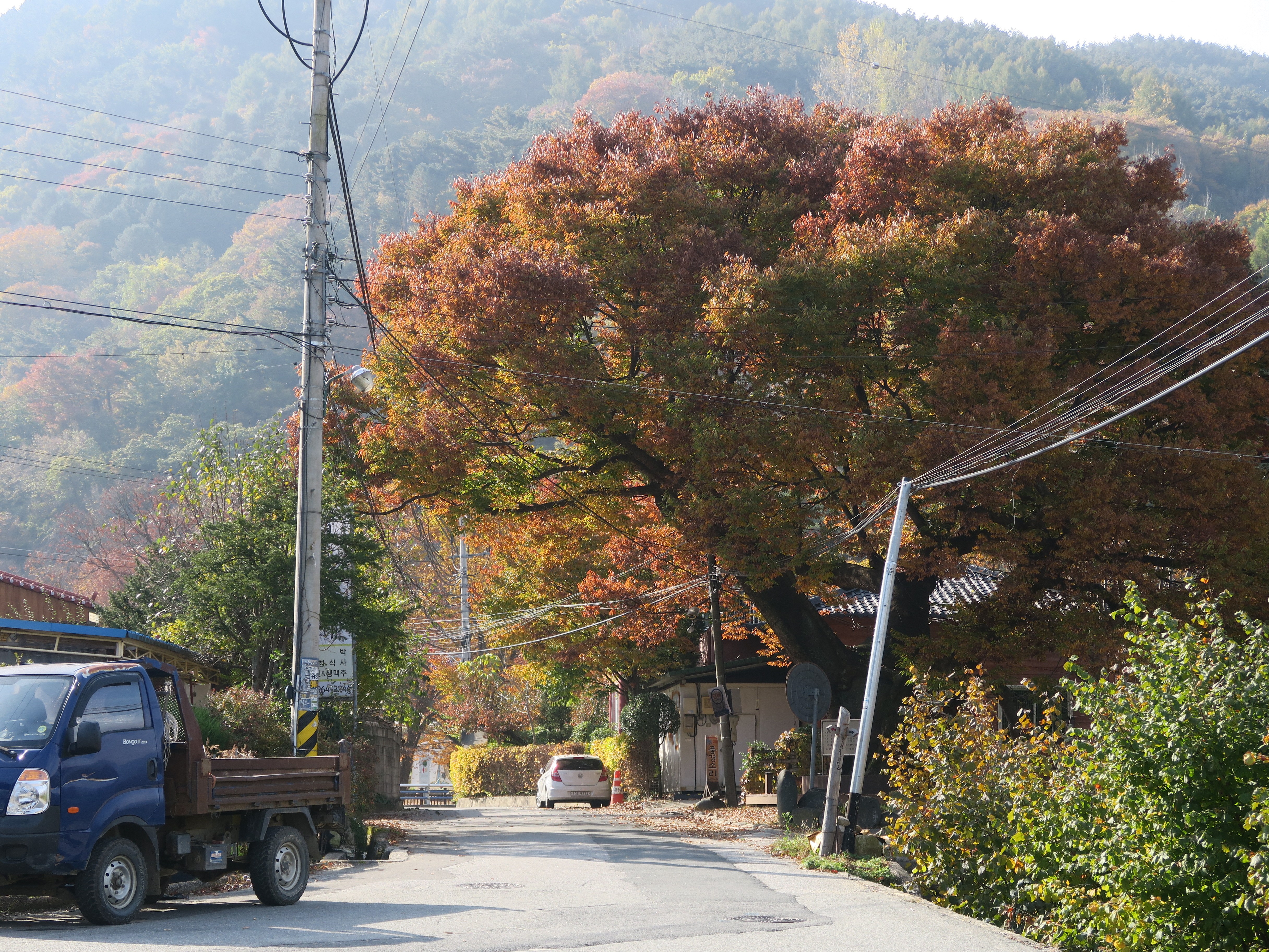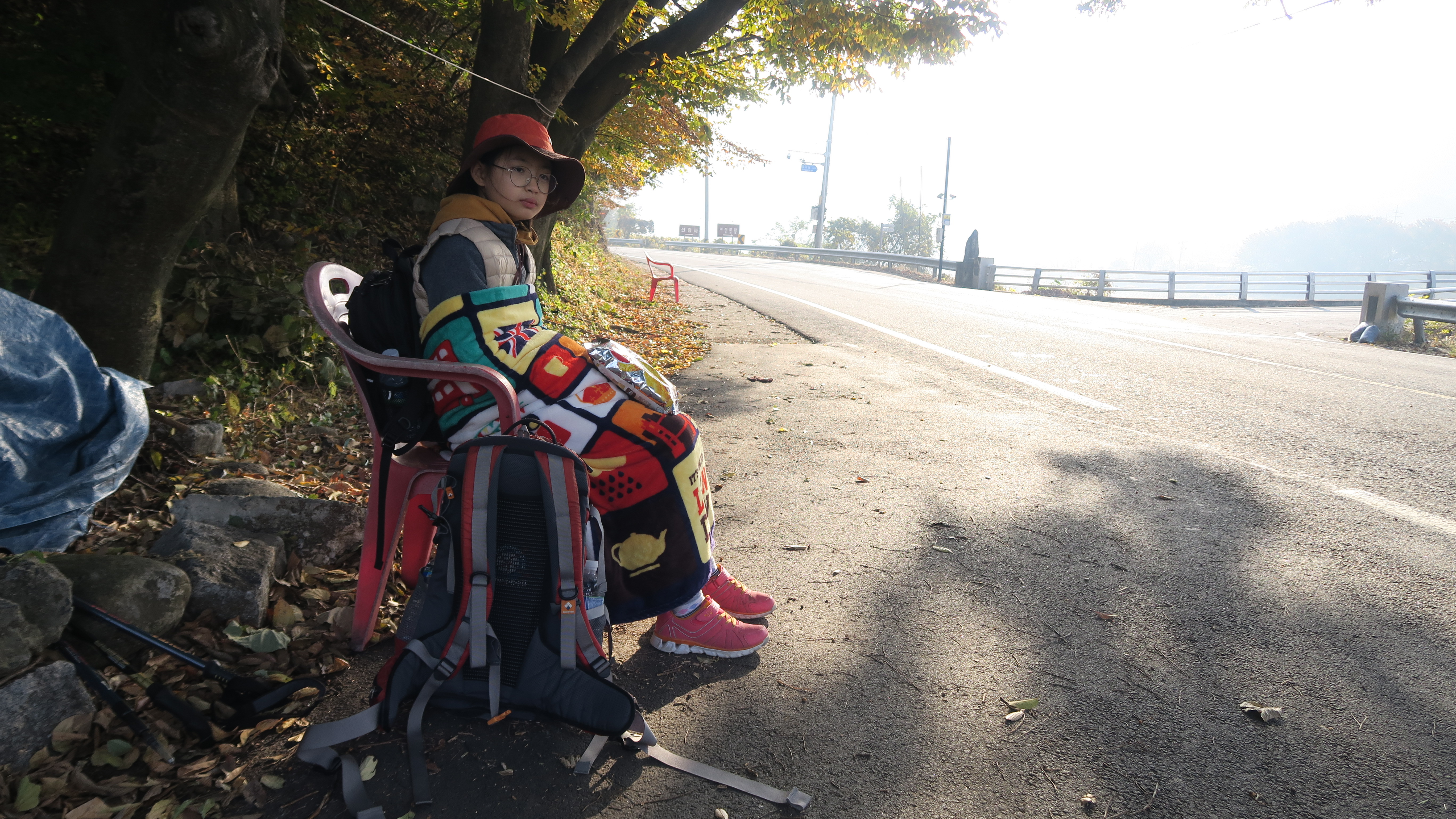 이른 새벽에 눈을 떠 다시 차를 몰아 4구간의 마지막 지점 동강마을에 도착한 건 8시 40분 정도. 하지만 눈앞에서 버스를 놓치고 난 후 한 시간을 기다려야 했다. 시골에서 대중교통을 이용하기 위해서는 기다림에 익숙해져야 한다. 스마트폰도 보지 않고 떨어지는 낙엽과 흘러가는 구름으로 바람과 계절을 온전히 느끼는 시간도 나쁘지 않았다. 도시 속에서 언제 이런 고요와 평화를 느껴볼까. 그렇지만 한자리에서 오랫동안 주변 풍경을 보는 일이 어색해서인지 자꾸 서성거렸다. 아무래도 계속 걷기 여행을 하겠다면 이런 시간에 빨리 익숙해져야겠다.
