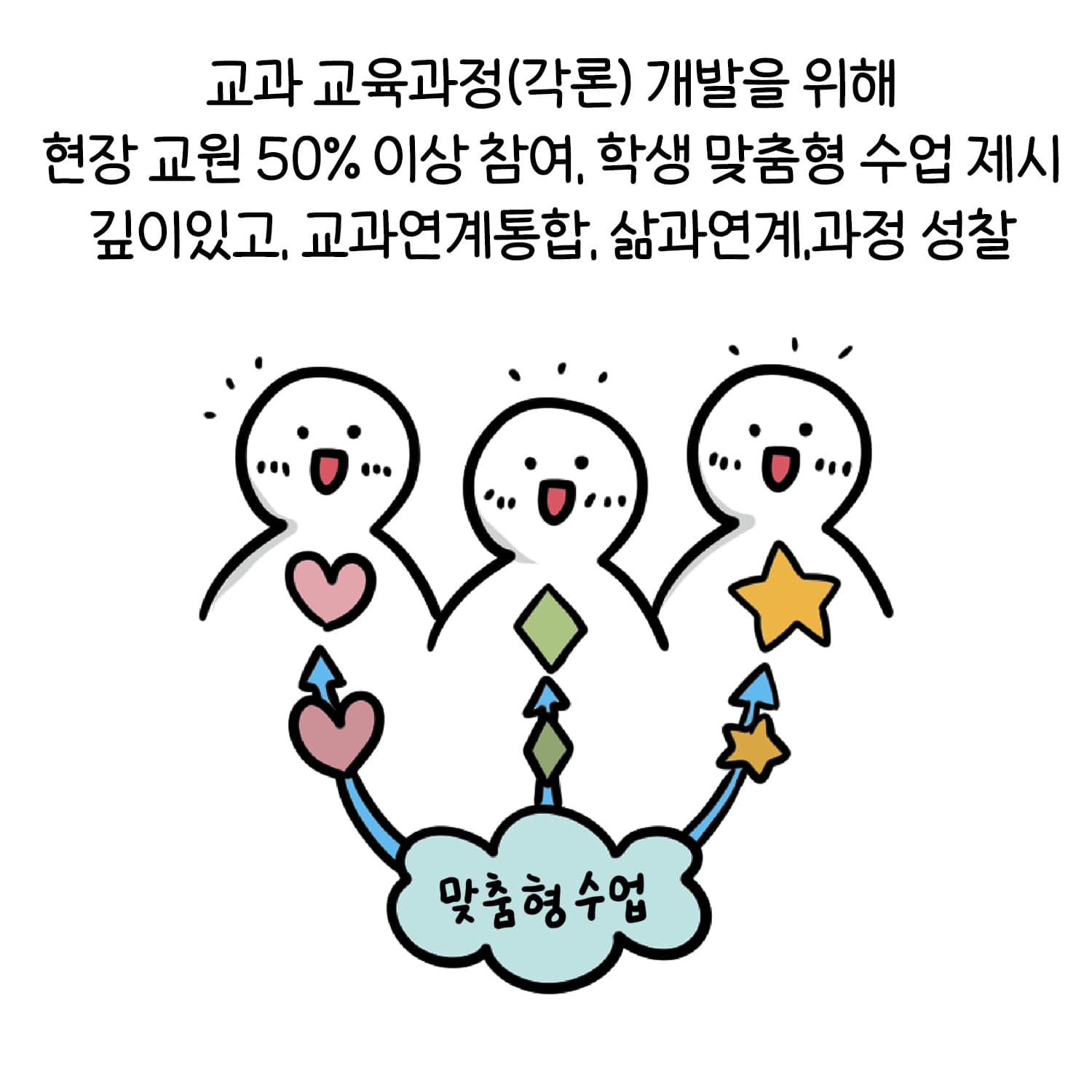 - 교육 방향: 공급자 중심에서 개별화된 학습 경험 중심으로 → 학생 맞춤형 교육과정, 교육과정 자율성 확대
