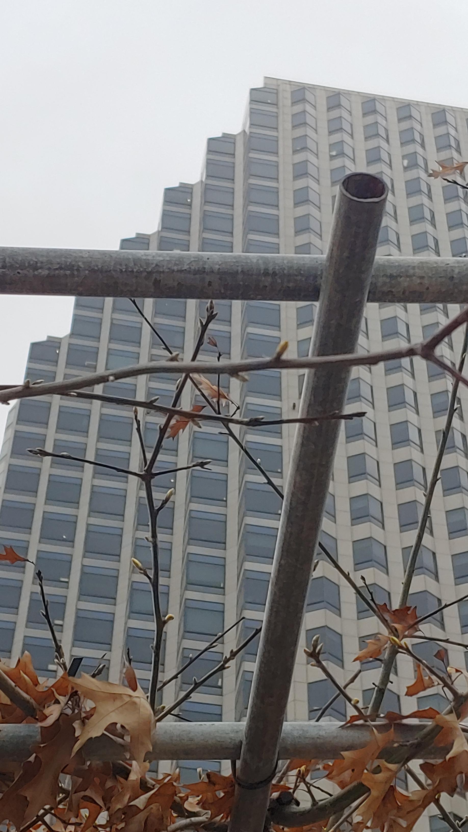 잎을 달고 있는 나무가 처음 이곳에 심어진 게 2019년도였다. 이곳에 심어졌을 당시에도 제대로 잎을 틔우지 못하고 비실비실 말라 죽어가고 있었다. 수액 봉투까지 매달리는 모습을 보면서 조마조마했는데, 어찌어찌 살았났다. 8월이 지나서야 잎이 듬성듬성 자라났을 정도니 그야말로 기사회생한 셈이다. 아마도 이런 어긋난 성장 흐름이 지금처럼 마른 잎을 남기고 겨울을 나는 모습으로 남게 했을 것이다.
